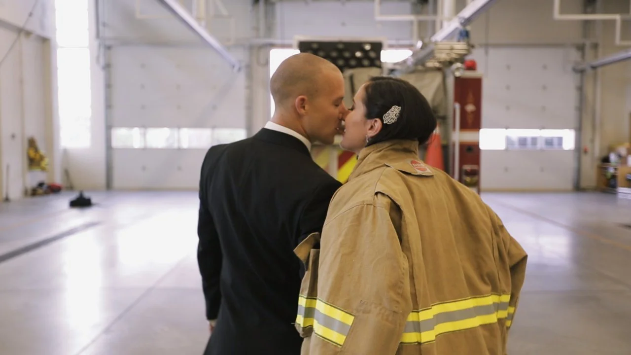 The day had finally come! We were sooo excited! From the getting ready location for the ladies, to filming at the firehall where Shae works, to the beautiful bride's dress (all the way from Kleinfelds's in NYC)- everything had been carefully considered and planned to perfection. Everyone was having a great time and relaxed, which we love!