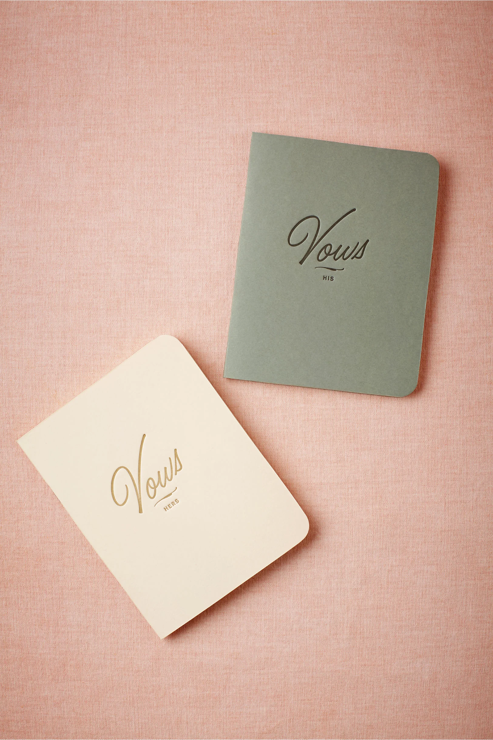 1. These letterpressed vow books. Not only is letterpress on trend but having your vows kept in these ultra chic books after your wedding are the perfect keepsake. We love these because not only will they look great on film, but they will sound great. Sound great you might ask? Well there's nothing more heart breaking than having our audio ruined by a bride or groom nervously scrunching up the paper in their hands at the alter!